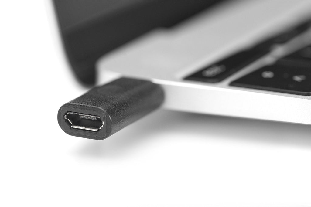 Adaptador compacto para conectar dispositivos con interfaz USB Type-C™ (como smartphones, ordenadores portátiles o tablets) con adaptadores de corriente, ordenadores o concentradores mediante un cable de conexión USB 2.0 A a micro B.