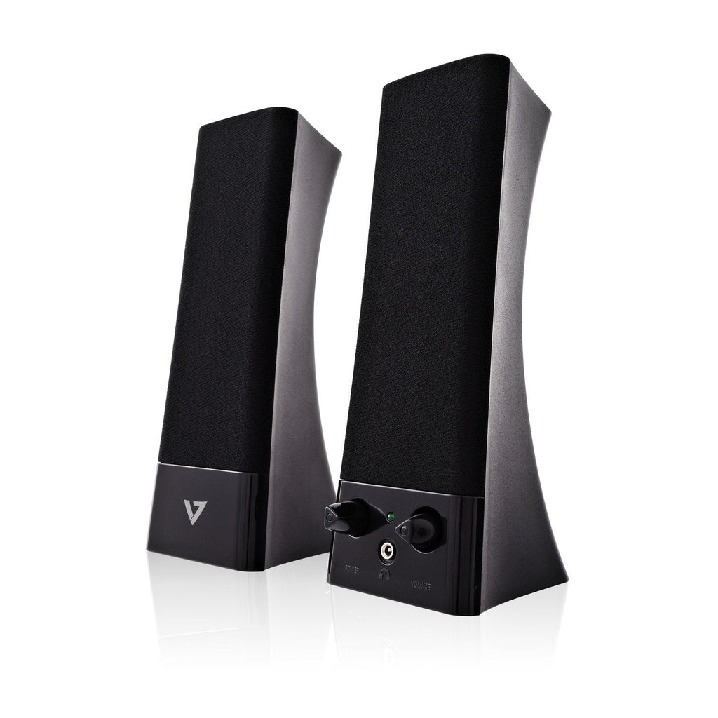 Enciéndalos y disfrute al máximo del sonido con los altavoces SP2500 de V7. Ideal tanto para ordenadores portátiles como de mesa, este sistema de altavoces compacto emite altos y bajos claros y tiene un diseño brillante, elegante y moderno. Los altavoces se pueden utilizar en cualquier ordenador con facilidad; tan solo conéctelos al puerto USB y comience a disfrutar. El SP2500 adornará cualquier área de trabajo con su excelente sonido y un diseño compacto y elegante. El sistema de altavoces SP2500 de V7 emite un sonido rico y claro. Además, resulta increíblemente fácil de instalar y usar: es un artículo imprescindible.