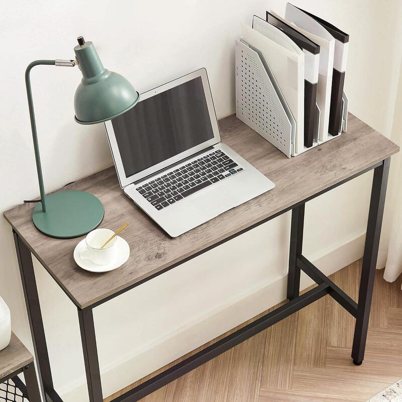 Vasagle Mesa De Bar Rectangular Estrecha, Cocina, Marco De Acero, 100 X 40 X 90 Cm, Gris Y Negro Lbt010b02