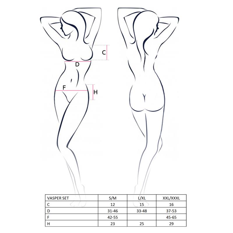 Dentro de la colección de Avanua te presentamos la línea Vasper. Con este set negro que incluye el sujetador, el liguero y el tanga podrás disfrutar como nunca de una noche de pasión sintiéndote elegante a la vez que sexy.