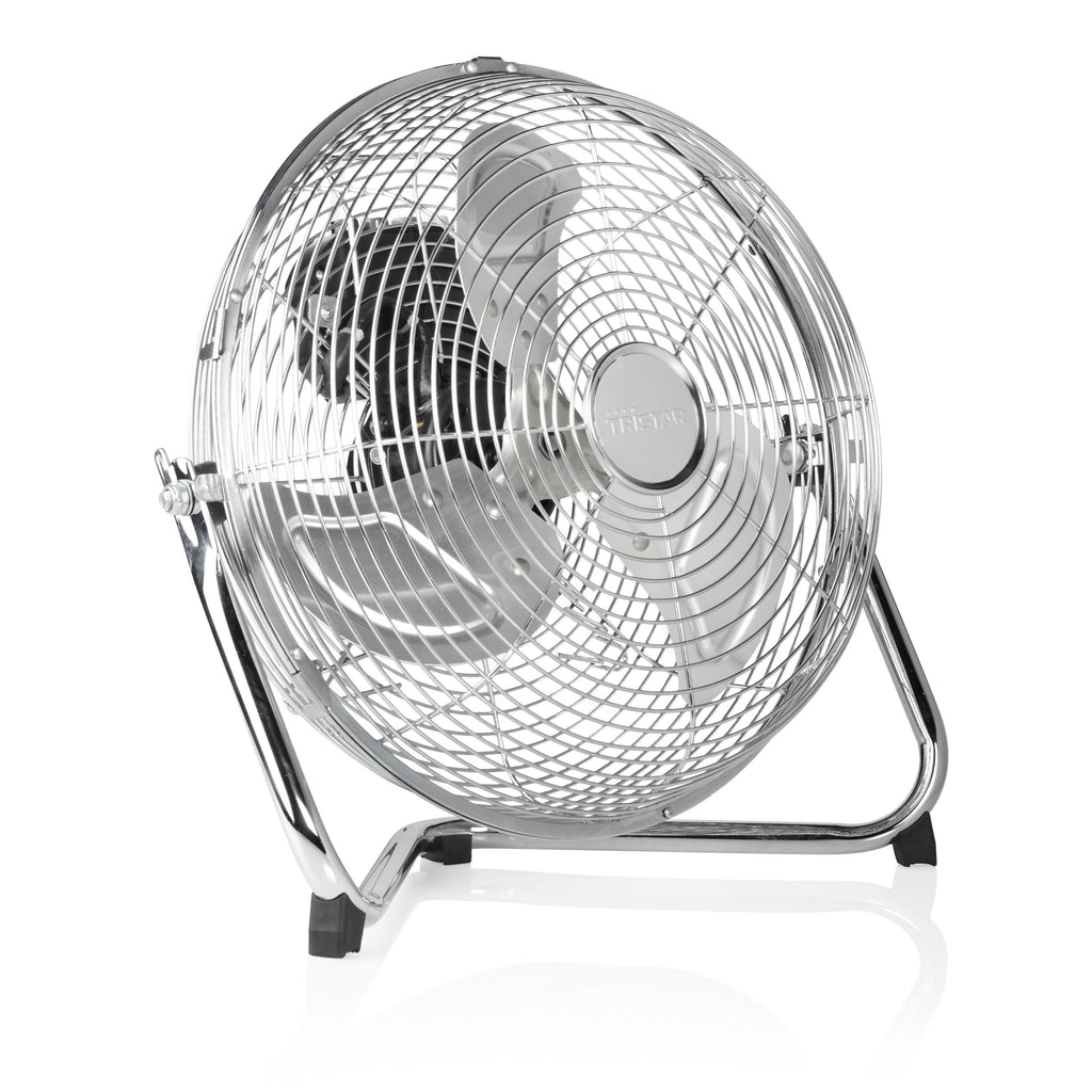 Esté fresco durante los calurosos días de verano con el ventilador de suelo con circulación de aire Tristar. Gracias a su marco metálico robusto el ventilador se soporta firmemente sobre cualquier tipo de suelo. Obtendrá un flujo de aire potente y refrescante gracias a su motor de 55 W. El ventilador puede inclinarse 130 grados para que pueda dirigir el aire hacia donde más lo necesite.