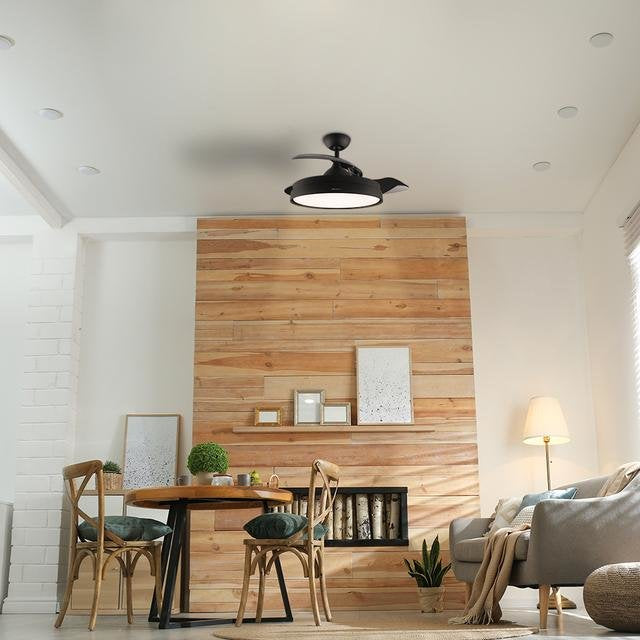 - El ventilador de techo ha sido diseñado para formar un equipo mixto que garantiza una elegante iluminación sin disminuir la eficacia en la distribución del aire. Las aspas son retráctiles por lo que podrás ocultarlas cuando lo desees a diferencia de otros ventiladores.