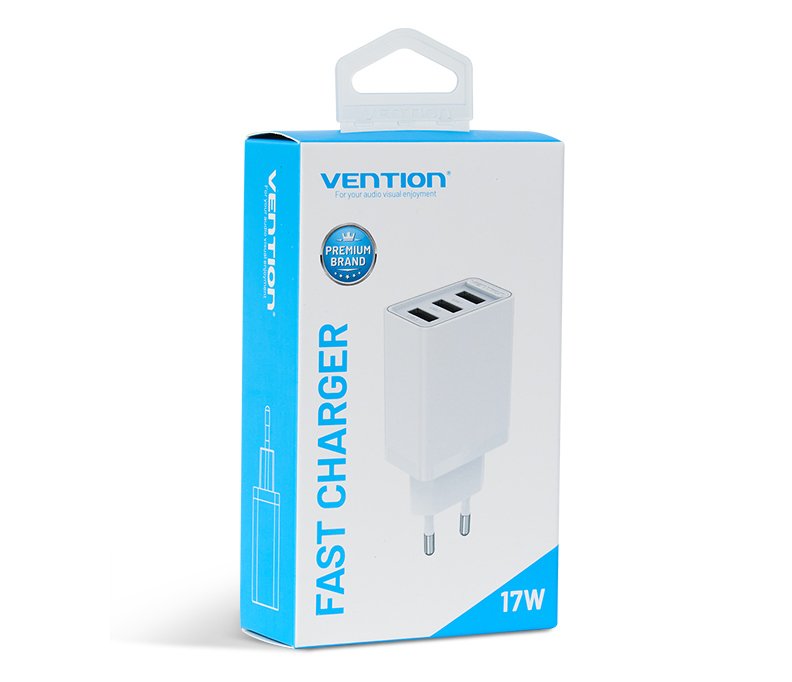 Vention Cargador de Pared FEW0-EU/ 3xUSB, Interior, Corriente alterna, 5 V, 3,4 A, Blanco