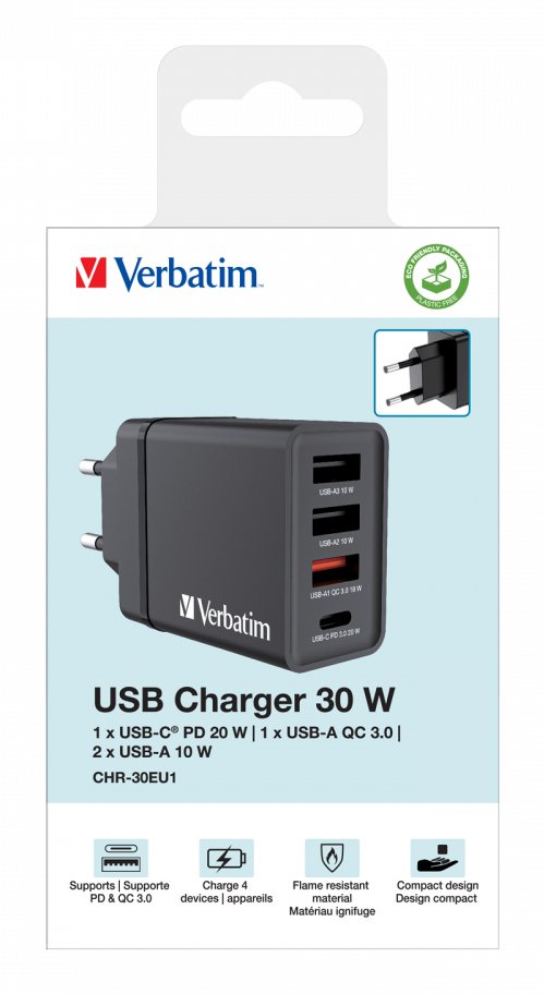 Verbatim 49700 cargador de dispositivo móvil Universal Negro Corriente alterna Carga rápida Interior
