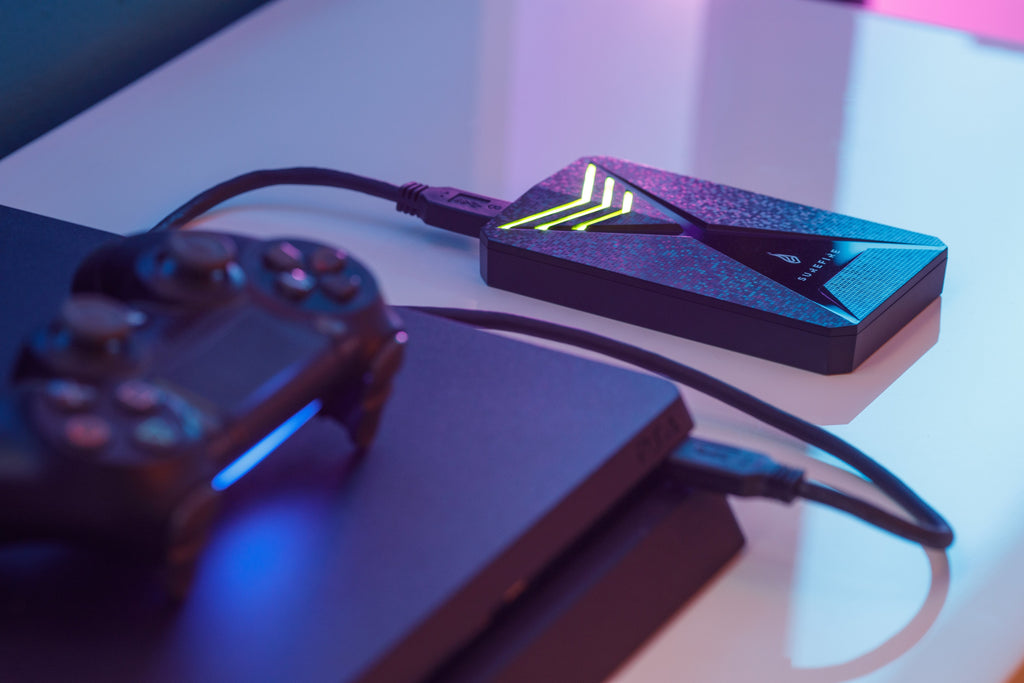 Con luces de acento LED multicolor RGB y un diseño de la caja influenciado por las consolas más recientes, el disco duro SureFire para gaming presenta altas velocidades de transferencia de datos y es perfecto para guardar todos los juegos.