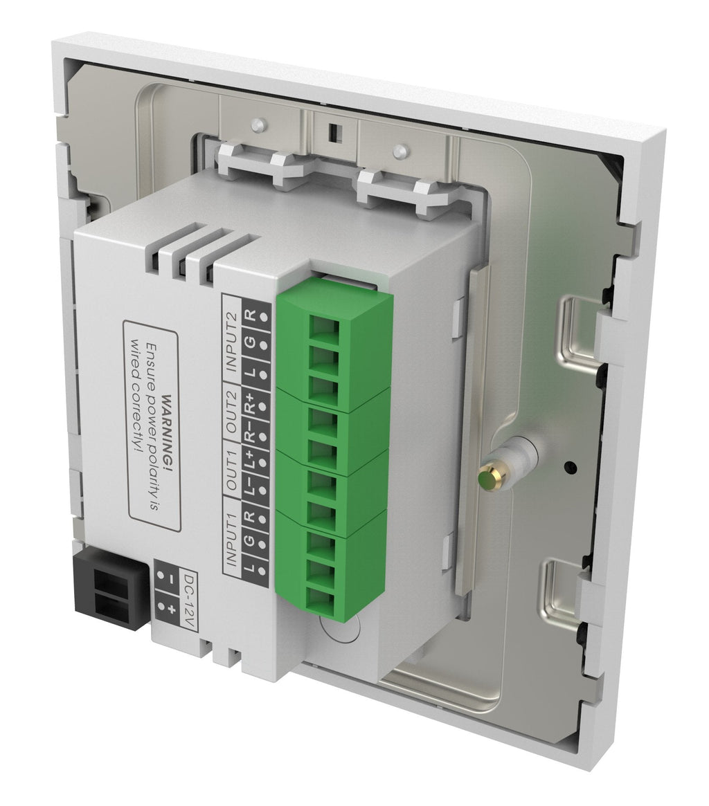 Se incluye una caja de conexión de una salida y marco; alternativamente, puede montar el módulo del amplificador en un marco de doble salida con otros módulos Techconnect.