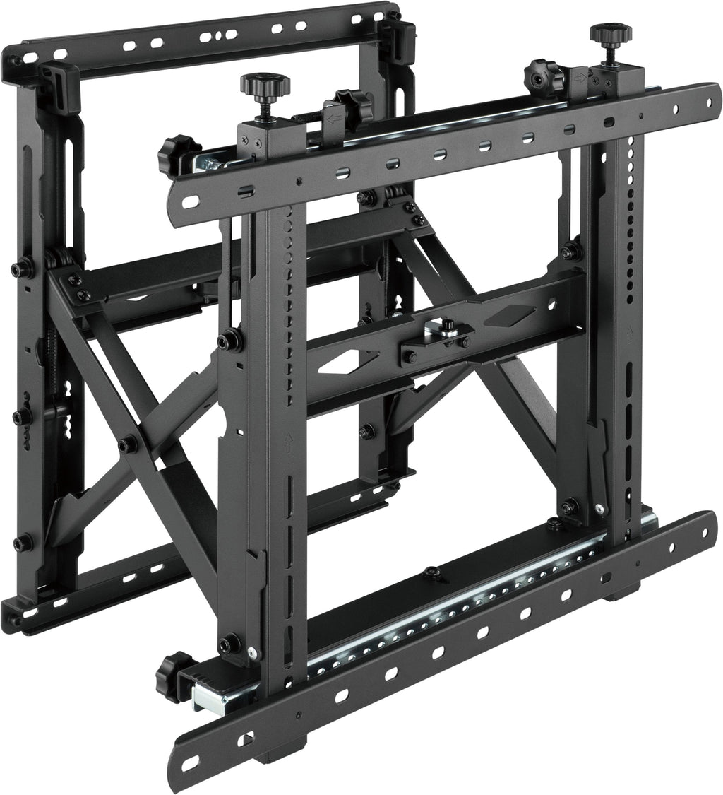 Es un soporte mural para pantallas de vídeo con servicio integral y provisto de un microajuste sin herramientas y, además, cuenta con un fácil acceso a la parte posterior de la pantalla que favorece su mantenimiento.