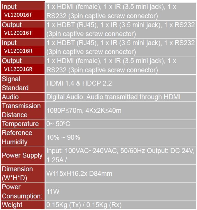 Vivolink VL120016, Transmisor y receptor de señales AV, 70 m, Alámbrico, Negro, HDCP