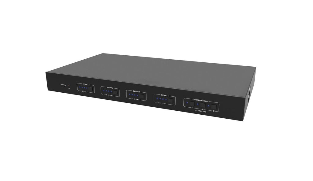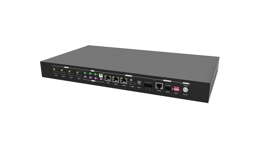 - Cantidad de puertos de entrada HDMI: 4 Cantidad de puertos de salida HDMI: 1 Puertos de entrada RJ-45: 1 Puertos de salida RJ-45: 3