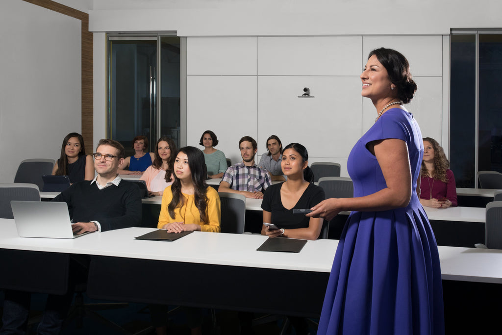 Las funciones de panorámica, inclinación y zoom se pueden usar con el mando a distancia para abarcarlo todo en la sala, el auditorio, el aula o el espacio de trabajo. La cámara también se puede usar desde una ubicación remota, mediante software descargable.