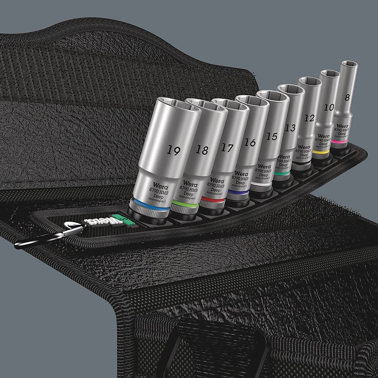 Wera 05004545001, Juego de enchufes, 3/8", Métrico, 9 cabezal(es), 8,10,12,13,15,16,17,18,19 mm, 320 mm