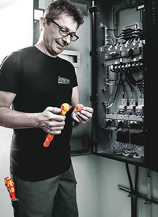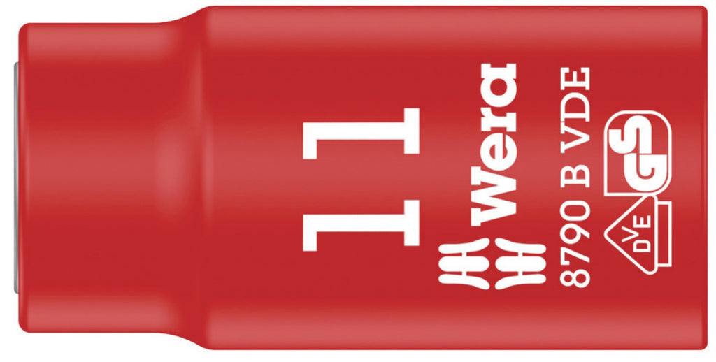 Vasos VDE de 3/8" que ofrecen una mayor seguridad gracias a la camisa interna de aislamiento de color amarillo que en el caso de un daño eventual de la capa exterior de aislamiento VDE de color rojo queda claramente visible. Se trata de una herramienta probada individualmente pieza por pieza según la norma IEC 60900 a 10.000 voltios para garantizar un trabajo seguro bajo la tensión permitida de 1.000 voltios.