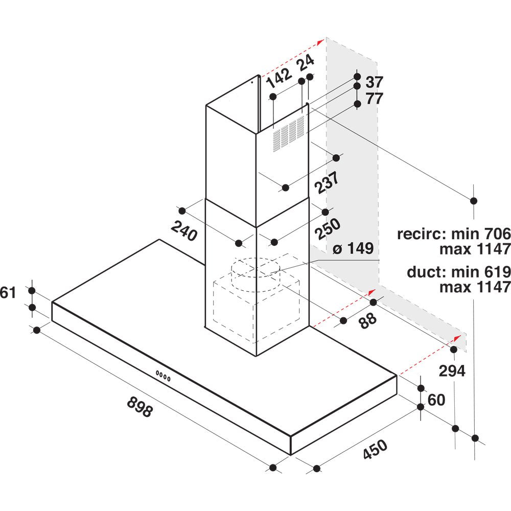 Whirlpool AKR 559/3 IX, 430 m³/h, Canalizado/Recirculación, E, D, C, 65 dB