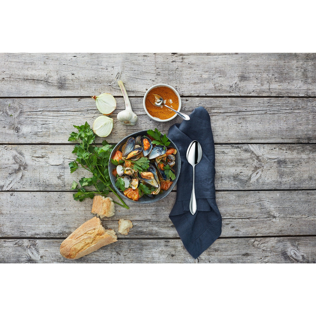 - Conjuntos por persona: Cuchara de café, Tenedor de mesa, Cuchillo de mesa, Cuchara sopera, Pastry fork