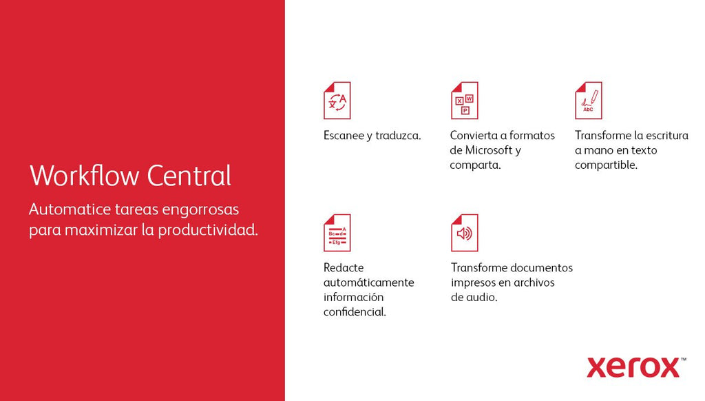 • INTELIGENCIA INTUITIVA: La simplicidad impulsa la productividad con los controladores de impresión de Xerox® y Xerox® Print & Scan Experience, y elimina los problemas en tareas complejas como el enderezado automático, el escaneado de recibos y las imágenes de recorte automático.