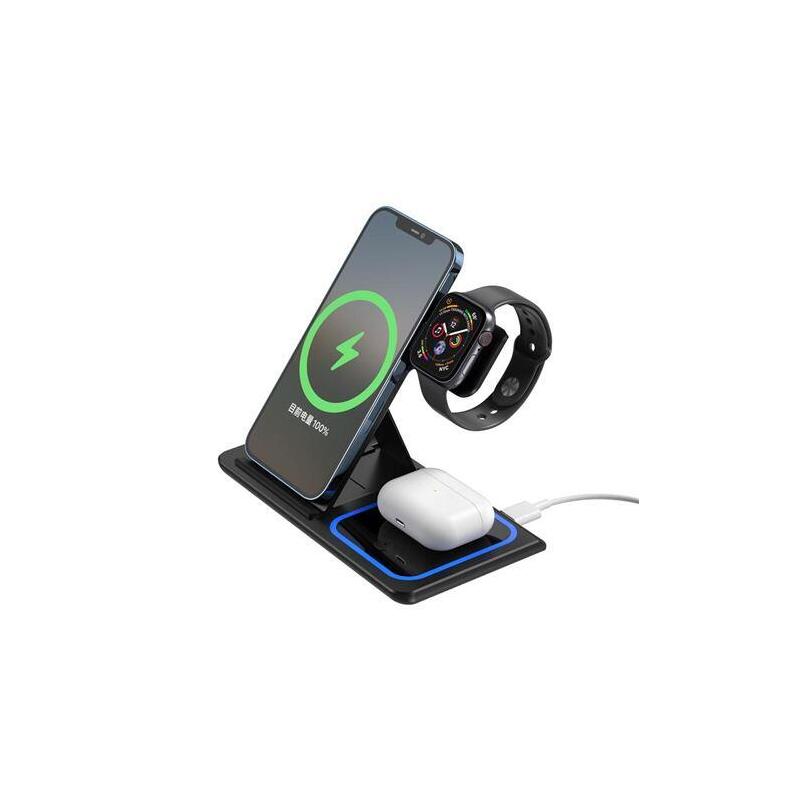 Xo Wx023 Estacion De Carga Inalambrica Triple 15w - Carga Hasta 3 Dispositivos Simultaneamente - Deteccion Automatica - Color Negro