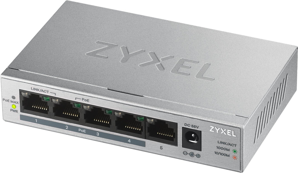 Zyxel GS1005HP, No administrado, Gigabit Ethernet (10/100/1000), Bidireccional completo (Full duplex), Energía sobre Ethernet (PoE)